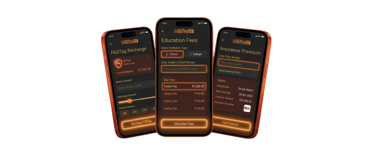 India's fastest bill payment platform. FASTag, electricity, education, insurance — all from one unified dashboard, secured by Bharat Connect.